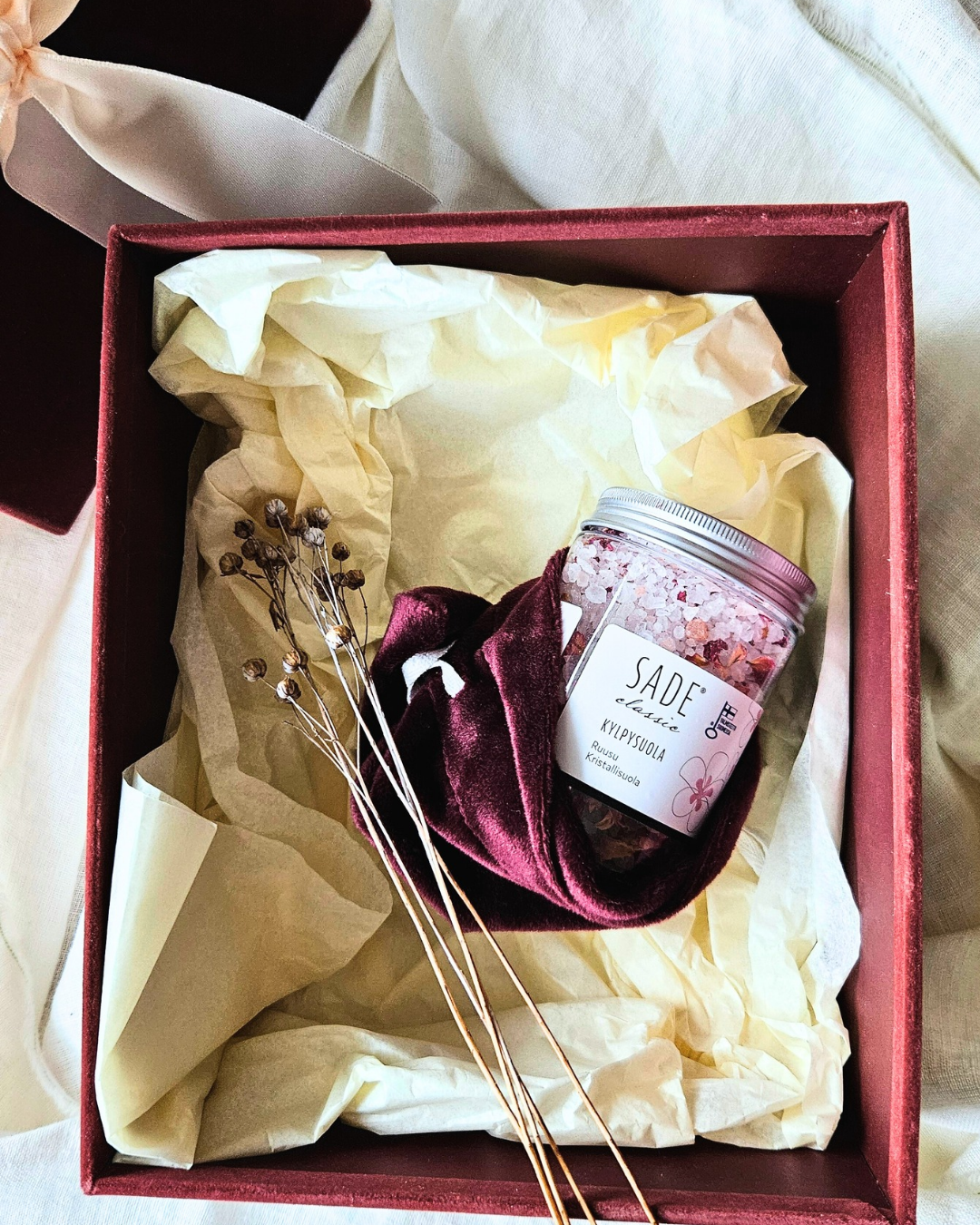 - Himalajan suola & ruusunlehti -kylpysuolan